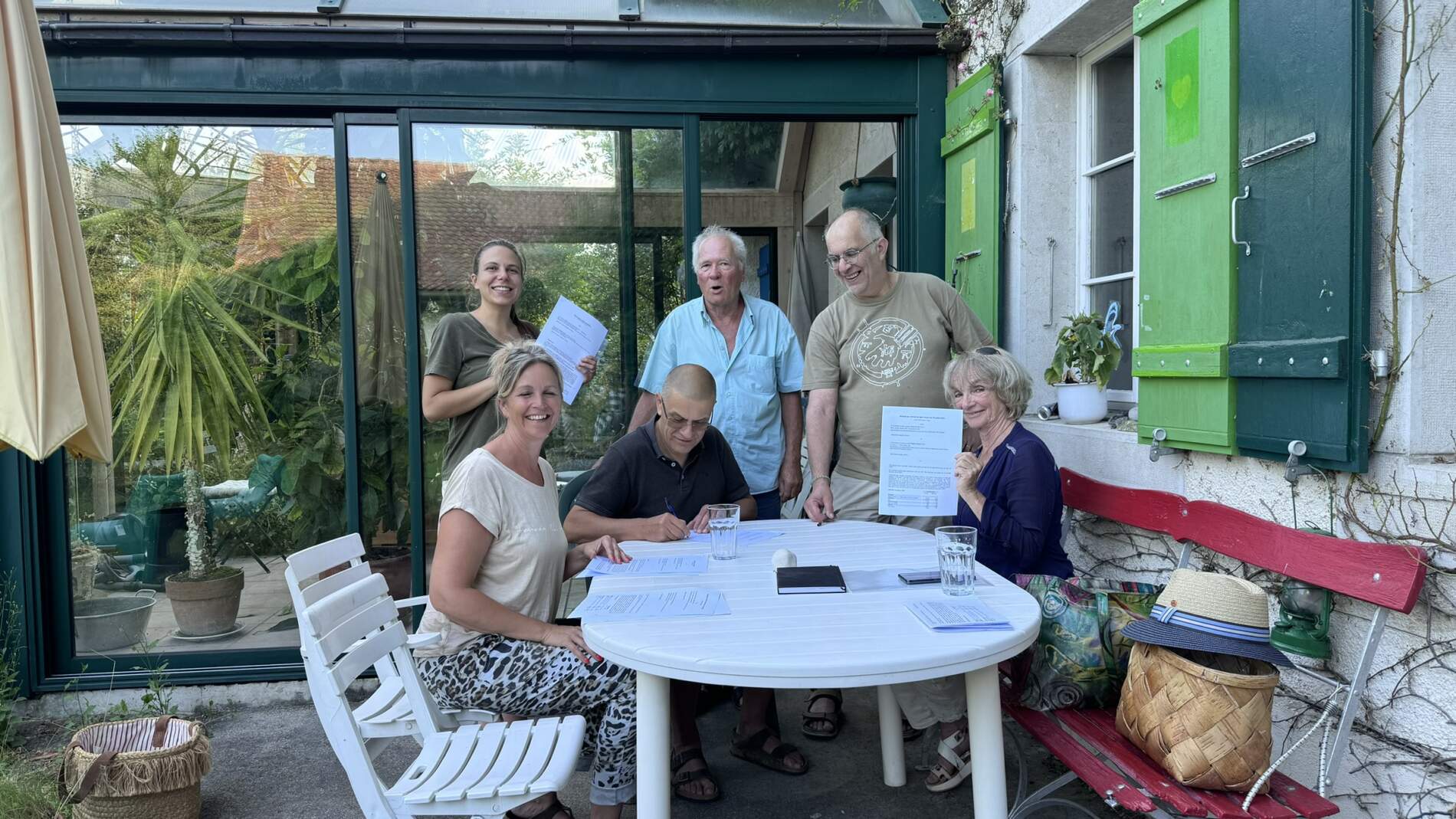 Souvenir de la signature du contrat avec "Servir La Vie" à la Maison: de g. à d. Elisa, Céline, Valentin, Eric, Daniel, Marianne